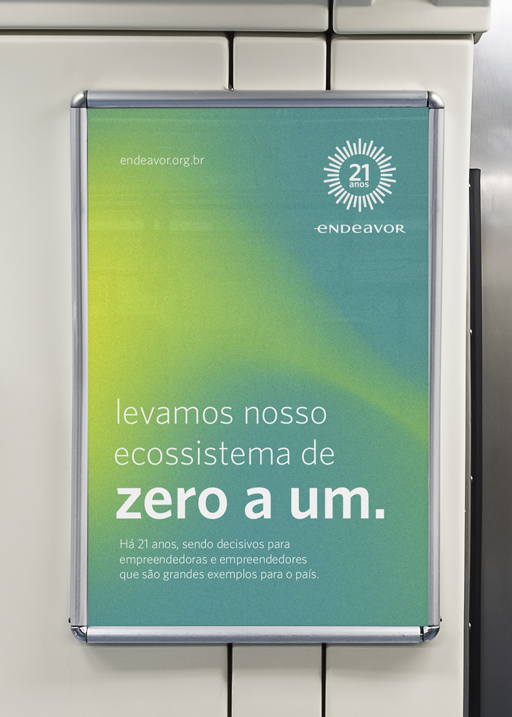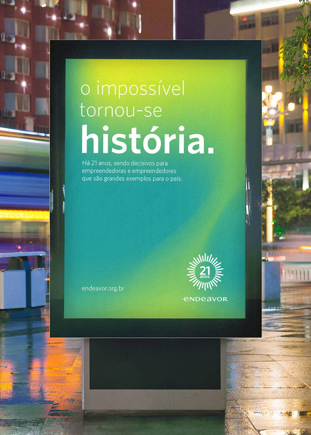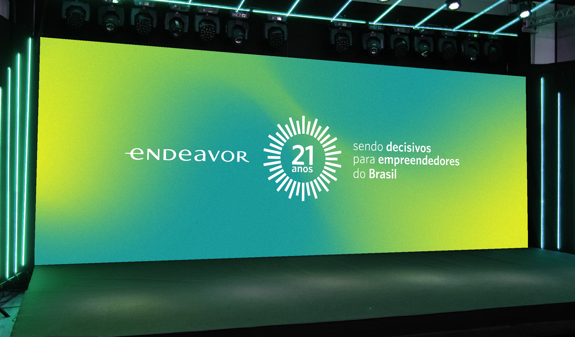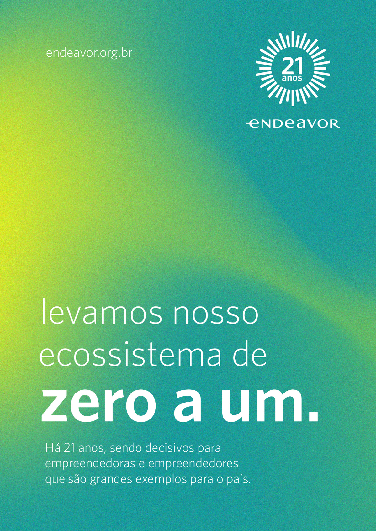 For this project, it was requested the creation of a visual identity for Endeavor's 21-year event in Brazil. The idea for this project was to convey the feeling of energy, evolution and vision that are Endeavor's characteristics.